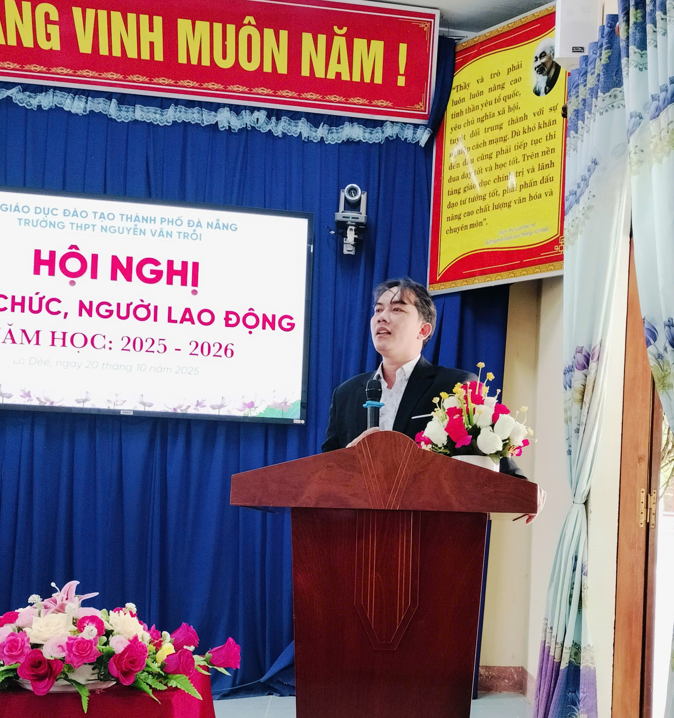 Sáng ngày 20/10/2025 Trường THPT Nguyễn Văn Trỗi đã long trọng tổ chức Hội nghị Viên chức, người lao động năm học 2025 – 2026. Đây là hoạt động thường niên có ý nghĩa quan trọng, nhằm tổng kết, đánh giá việc thực hiện các nhiệm vụ năm học 2024 – 2025; đồng thời đề ra phương hướng, chỉ tiêu thi đua và giải pháp thực hiện trong năm học 2025 – 2026.
